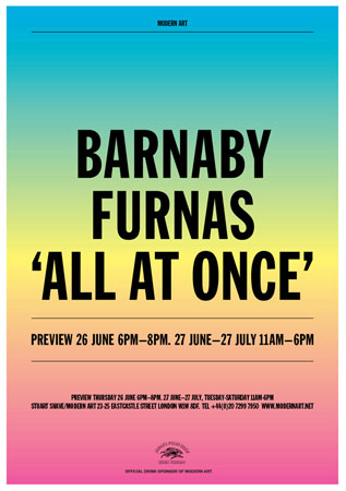 Stuart Shave/Modern Art is pleased to present American artist Barnaby Furnas� second solo exhibition with the gallery. The show will present new and unseen paintings made during the last two years, including works from Furnas� ongoing Rock Concerts, Effigies and Flood series. On exhibition 27 June through 27 July, 2008. Furnas� uses the physical action of painting to hold the world in freeze-frame, dissecting the visual and performative landscapes he captures. Using these frozen images to read like film stills of speed Furnas creates complex spatial abstractions, often on an epic scale.