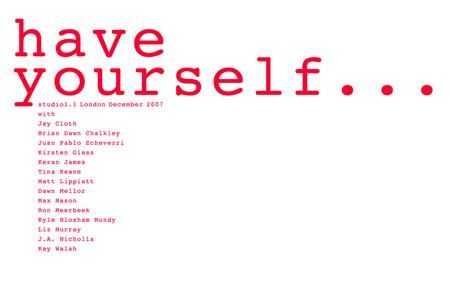 Studio 1.1: 'HAVE YOURSELF... - 7 Dec 2007 to 23 Dec 2007 Current Exhibition |