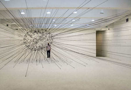 Tomas Saraceno Galaxies Forming ALong Filaments, Like Droplets Along the Strands of a Spider 2008, elastic rope, installation dimensions variable