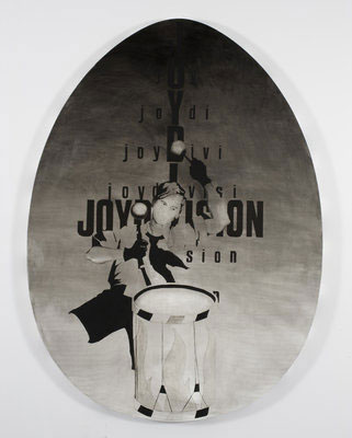 Among the paintings shown are a series of foot square portraits of some of the best-known Joy Division bootlegs, along with a few that Bradley himself invented. Images from rare promotional fliers, LP inserts, video recordings, and cassette-only releases have been re-cropped, re-sized, and re-combined. After being painstakingly rendered, usually on grounds of palladium leaf, they have been brushed over with numerous washes, making the paintings appear oddly timeless. The preservation of life � the mummy complex � has always been Bradley's concern. The fact is that either as a documentarian or as a fantasist, Bradley's work has always stemmed from his desire to preserve, or otherwise re-animate, a cultural artifact.
