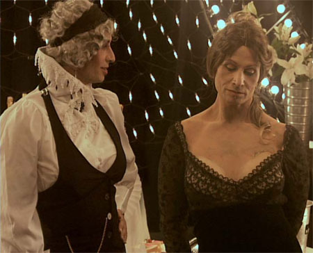 In the rear gallery is Body Double 22, 2007-10, a non-linear composition restaging select scenes from Stanley Kubrick's thriller Eyes Wide Shut, with Dellsperger's longtime collaborator Jean-Luc Verna, playing every character, both male and female. The film uses digital technology to splice together a multitude of Vernas, creating an uncanny assembly of transvestite clones. Verna's dramatic range is broad, and tinged with a menacing humor. With an expressivity echoing the overly determined melodrama of Kubrick's film, Dellsperger revisits his perennial themes of collapsed notions of gender, destabilized identity, and the infiltration of gay subjectivity into the Hollywood mainstream.