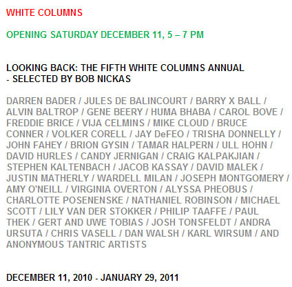 Looking Back / The Fifth White Columns Annual - Selected by Bob Nickas Opening reception Saturday December 11, 5-7PM