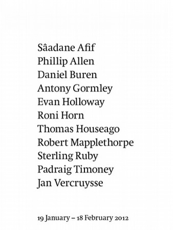 Sa�dane Afif, Phillip Allen, Daniel Buren, Antony Gormley, Evan Holloway, Roni Horn, Thomas Houseago, Robert Mapplethorpe, Sterling Ruby, Padraig Timoney , Jan Vercruysse