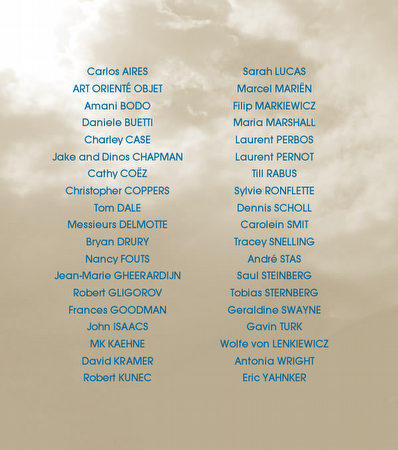 THE REMARKABLE LIGHTNESS OF BEING 13.11.2014 - 10.01.2015 Unbearable for some, the lightness of being might rather be said to be remarkable at Aeroplastics, which for years has with quirky humour cultivated a taste for the strange. The Remarkable Lightness of Being proposes, through a selection of 36 artists from Belgium and abroad, a look at current practices inherited from surrealism in its broadest sense - not the dogmatic current theorized by Breton, but rather that of Magritte and his followers, in Belgium or elsewhere - without forgetting the distant but strong reminiscences of Dada. Dada•sts and surrealists shared a common passion for the art of the collage, visual or literary, that one so much finds with Marcel Mariën or André Stas. Like the latter, Nancy Fouts likes juggling with words and images: in The Trip, the unfurled sails of a model boat are figured by two (false) joints. One finds other examples with Christopher Coppers, who renders homage to the Dada emblem par excellence (La Joconde of Duchamp), and renews the collage genre by adding a technological component (inclusion of small iPods). The object-sculptures of Laurent Perbos and Tom Dale evoke poetic puzzles, but the video Shooting Through by Dale, at once aggressive and funny, recalls the violence underlying the Dada spirit. The warrior metaphor is found back in the fragile munitions in ceramic by Cathy Coëz, the Armements contemporains composed from dead flies by Jean-Marie Gheerardijn, the Kalashnikov in bronze from Robert Kunec, the delicate watercolours depicting nuclear apocalypses from Gavin Turk, and the video of an aerial performance (in all senses of the term) by Maria Marshall. With David Kramer, the mental shift comes from the juxtaposition of an image and a text that have no obvious connection with each other, though one can’t keep from trying to find one - a concept equally developed, but with visuals of a different nature, by Filip Markiewicz. For his part, Daniele Buetti articulates his compositions via laconic written exchanges that seem to have been gleaned from the internet, a reference to the omnipresence of networks in our lives, something also evoked by Amani Bodo. Till Rabus and Wolfe von Lenkiewicz both turn to art history, the first with an evocation of Arcimboldo (firmly anchored in our age when fruits and vegetables have the tendency to desert the list of ‘in’ foods), the second by revisiting in his own way Breugel the Elder’s The Hunters in the Snow. The brothers Chapman go further still, producing a monstrous 19th century-like portrait more true than nature. Tobias Sternberg describes himself as impassioned by collage, and even his transformed objects participate with a will to show the real differently - something we also find with Tracey Snelling, who confronts realism from her miniature buildings to her found objects. The fragile assemblages and anthropomorphic sculptures of Laurent Pernot, Sylvie Ronflette and Carolein Smit evoke vanities, while Messieurs Delmotte fear not to meddle with original sin in the incarnation of legendary rock stars (for reasons which touch more on their makeup than their music). Frances Goodman, as well, is interested in artifice: after having made sculptures from false nails, she conceives a series of compositions based on false eyelashes. To these objects supposedly incarnating the quest for feminine beauty, Sarah Lucas opposes a different stereotype: a naked man with erect penis is replaced by a beer. And while the embroidered Tambours apotropa•ques from Art Orienté Objet attempt to conjure up the threat posed by moneyed interests in terms of global warming and its effects on animal species, sexual tourism shows no fade in ever-hotter tropics, as testified to in the paintings of Geraldine Swayne. Dennis Scholl and Eric Yahnker, both excellent in the practice of drawing, here turn this classical technique to produce dreamlike compositions in the case of the former, ones offbeat and humorous for the latter. As for John Isaacs, his sculptures attain such a degree of realism that one begins to doubt their fictive nature. For his part, MK Kaehne (who has already collaborated with Isaacs in the past) produces a series of elements in suitcases, like this installation of pole dancing that appears perfectly functional (and no doubt is). Where is the ‘true’, where is the ‘false’? We even come to doubt History itself, in view of God Save Me from Robert Gligorov. All these works testify to the vitality of our inheritance from Dada and surrealism, and the manner by which today’s artists have found a way to reinterpret it with originality – proof that contemporary art may not be reduced to the neo-conceptual current, as is so often seen to be the case. P-Y Desaive |