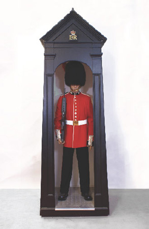 GT as Queens Guard GT waxwork as Queens guard inside century box Wax, wood, clothing, gun, paint |
