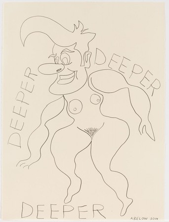 JOSHUA ABELOW: RELAX at Arts+Leisure May 10th – July 19th, 2014. Reception: Saturday, May 10th, 7-10pm. Freight+Volume is proud to announce the opening of its new project space, Arts+Leisure in East Harlem. Our inaugural project is a new series of drawings by Joshua Abelow entitled RELAX. Replete with a narrative of high- and lowbrow imagery ranging from exaggerated phalluses and cartoon breasts, to self-portraits, stick figures, warlocks, ghouls and misfits, Abelow is a poster boy for disaffected post-Gen X youth, as much influenced by and involved in social media as he is with Jungian and Freudian symbolism. RELAX shows an artist who is totally at ease with drawing, rare in an age of conceptual and digital artmaking. With a sure hand and a Matisse-ian simplicity and flair, Abelow chronicles the Rabelasian adventures and quixotic trials and tribulations of an artist wending his way towards emotional and artistic maturity within an urban framework - NYC. The people Abelow portrays in his rhythmic graphite on paper sketches are not so much caricatures as much as character-driven tragic heroes and heroines, bumping and colliding with each other in a clumsy yet erotic dance. Many of the drawings ironically portray running, hustling figures as well, at odds with the title of his show. They clamor for attention and respect, driven by a sexual neediness and narcissism that verges on the comic absurd. These drawings include a fair amount of Abelow's signature text, quirky titles and exclamations ("HELLOOO," "DEEPER DEEPER," "TRUE ROMANCE," "TRUST ME BITCH," INSTA DEATH," etc), which give the work a humorous, narrative slant. Above all, these scenes make us examine our own identity, our needs and vulnerability, our fragile egos, our fear and joy and addictive desire. The result is a very human and reaffirming embrace, a realization of what it means to be an artist and to be alive today. RELAX is composed of 25 drawings from a two-year period, never before shown, framed in a Crayola spectrum of stained maple molding against off-white mats. They are all 30x22” in format, lending a quality of storybook to the presentation. Typically, Abelow has presented a wide-ranging, salon-style body of work in previous exhibitions, which included paintings and drawings, geometric abstraction and figurative representation, but for his solo project at Arts+Leisure the artist has purposefully pared it down and limited his focus to this graphic series of work on paper. By doing so, he stills and distills the narrative to allow a considered reflection and contemplation of the pathos, sensibility and dialogue inherent in his work. Joshua Abelow is an artist living and working in New York. Solo exhibitions include “OH! ABELOW” at James Fuentes, New York (2011), "DUMB & EASY" at Tomorrow Gallery, Toronto (2011), “FAMOUS ARTIST” at Sorry We’re Closed, Brussels (2012), “ABELOW SCHMABELOW” at Brand New Gallery, Milan (2012), "Songs From A Room" at Devening Projects, Chicago (2012), “PAINTER” at Wasserman Projects, Birmingham, MI (2013) and "ABELOW ON DELANCEY" at James Fuentes, New York (2013). Recent publications include; ART FICTION, Karma, New York (2013), ART TIME, James Fuentes, New York (2013) and Painter’s Journal, Peradam and James Fuentes (2012). This fall Abelow has a two-man show with Gene Beery at Bodega, New York (2014). He is represented by James Fuentes in New York. And curates/runs : http://joshuaabelow.blogspot.com/ Arts+Leisure is the project space of Freight+Volume gallery in Chelsea. Located at 1571 Lexington Ave, between 100th and 101st streets in Upper Carnegie Hill/East Harlem, opposite Church of the Life-Changers and a few blocks from El Museo del Barrio, it was founded in spring of 2014 by Nick Lawrence, himself a painter and writer, as well as owner/director of Freight+Volume, DNA Summer Residency in Provincetown, MA, and co-founder/partner of former LFL Gallery in NYC. Hours of Arts+Leisure are Wed-Sun 11-6 or by appointment. Please join us on Saturday, May 10th between 7-10pm to celebrate the inaugural show at A+L and Joshua Abelow’s RELAX. Refreshments will be served. A limited edition book of the artist’s drawings and poems, also titled RELAX, will accompany the exhibition. For more information or to obtain a pdf of the show please contact Nick Lawrence at [email protected] or 917-880-7299. |