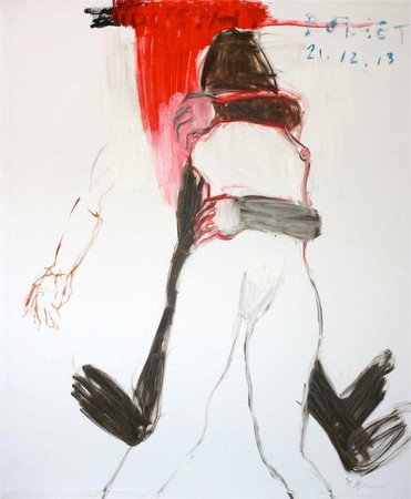 LIFE SENTENCE An exhibition of new work by Misheck Masamvu Opening Thursday 3 April 2014, 18:00 (exhibition closes 3 May) blank projects is pleased to present Life Sentence, an exhibition of new paintings by Misheck Masamvu. Following Epitaph, his first exhibition at blank projects in 2012, Life Sentence continues to reflect on the fraught political and social situation of the artist's home country, Zimbabwe. Produced in oils with vigorous brush strokes and intense colors, the paintings depict figures and chimeras, often disfigured and degraded, which seem at times to be trapped in bold colour fields resembling abstracted landscapes or mobs of imagined spectators. In other paintings the background comes to the fore and individual figures subtly shift into focus, playing out ironically absurd scenarios that reflect on the psychosocial and political realities of present day Zimbabwe. Masamvu's palette is equally uneasy and combative, combining patches of bright primary colours with acidic tones and monochrome scrawl, the surfaces scratched raw by dry brushes or left untreated with seeming disregard which belies a confidence in the formal execution of these works. Masamvu is of a generation of Zimbabwean painters born at the moment the country gained its independence. Growing up together with the new government, he has and continues to bear witness to Zimbabwe's struggle for stability and social cohesion. His practice addresses this struggle, revealing a tension between opposing forces, evident in both the compositional elements and the subject matter of his paintings. According to the artist: "The works attempt to reconcile the notion of freedom in relation to applied statutes. However, the quest to resolve the injustice presiding over the constituency that shapes Life Sentence selectively reveals the theatre in question. It is staged, performed by an audience hypnotized, dressed in lab rat costumes. I have witnessed our struggle in preparing to play host to new ideas, culpable or inflicted. Once those in power regard our existence as raw material, our lives become relevant as servitude to their tenure. The same speech will be repeated until the walls of resistance are broken down, and their words become fact: the adoration of needles and haystacks where presidents are hand-picked. Why are we celebrating freedom? Whose freedom are we commemorating when we are decorating our chests with the ghost-teeth of fallen heroes?" Misheck Masamvu [b.1980] lives and works in Harare, Zimbabwe. He studied at the Atelier Delta in Harare, Zimbabwe and the Academy of Fine Arts in Munich, Germany. He has participated in numerous exhibitions, including the Dak'art Biennale and the 54th Venice Biennale where he represented Zimbabwe. |
