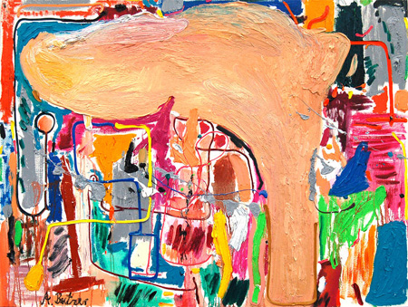"Andr� Butzer" Solo exhibition of Andr� Butzer CARBON 12 Gallery, Dubai March 14th -April 20th 2011 Carbon 12, in association with the prestigious Max Hetzler gallery, proudly presents the art of Andr� Butzer in his first major solo exhibition in the Middle East. Potato Chips, Coke and Medicine. Fanta and Sprite, long-life milk, Micky and Donald. At first glance Butzer's exhibition titles have a distinct pop feeling, a certain lightness. Works named �Blue Smurfs�, �Entombment of Winnie the Pooh� or �Favorite Painting of Paul Cezanne� suggest absurd and conceptual, even grotesque directions. But it is much more than that: �Science-Fiction Expressionism�, as Butzer himself calls his unique, demanding style. The founder of the legendary art academy �Isotrop� and co-editor of the magazine of the same name doesn�t seem to be concerned with genres, classifications or trends. His paintings oscillate between abstraction and figuration, enchanted with bright colors and executed with expressive brush strokes. Shapes are morphing and characters are born, a whole universe of signs and signifiers in constant flux, referencing American and German history, politics and economy, pop culture and the entertainment industry, but always focusing on the development of a personal vocabulary and grammar. Or in Butzer's own words: �I am not a painter, but an artist!�. |