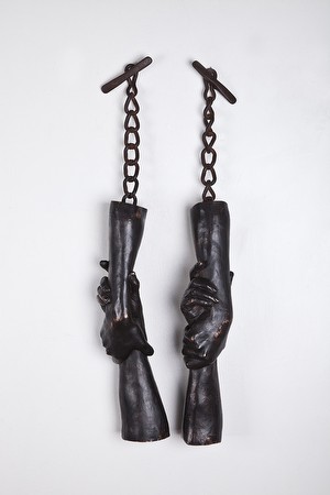SARA RAHBAR | SWARMING Sunday 2nd of November from 19:00 We are the self-fulfilling prophecy of the snake that eats its own tail, like the Ouroboros, of Greek mythology. Constantly all moving, like a horde of wasps, to one point all at once; protesting, screaming, fighting, hurrying to what end? Modern day slavery exists in the toil of work to make the materials that eventually contribute to our demise, we are lost in the collective hive of a machine that both sustains and destroys us. Carbon 12 is proud to present Sara Rahbar’s third solo show in Dubai, Swarming. Memory and ideological symbols are remixed with a very direct, physical syntax, while deconstructing personal history and the 21st century human condition. The materials collected or found and body parts casted reverberate against the walls in protest. Careful titles lead us in poetic discourse with the objects in front of us, and loose us along the way. There is a direct dialogue between the work and us, reflecting on aspiration and tragedy, we are witness to the battlefields of mankind and human nature itself. With geometric precision but organic arrangement, Rahbar combines wheels, batons, shoe forms, weapons, sickles, shovels, limbs, and other tools of once used trades, to create the workers eulogy. The sculptures act as sites of collection and remembrance. Once used and held by a human, the workers tools do not lose their humanity as the people who once used them lost their life, but stand as a representation for their sacrifice. Bronze cast arms, legs, and heads contort, confessing doubt filled apprehensions. With their sometimes bound, awkward or painful gestures, the limbs ask questions we are often fearful to know the answer to or anxiously nudge the relucent elephant in the room. Like the man made tools of years past, minds, bodies, and selves, labor away until grooves are worn away, points are no longer sharp and pieces move no more. The endless competition for success and standards of living drives humanity's lust for life to an early grave. We are left with a demonstration of how life extends beyond its own subjective limits and challenges the binaries we continually reconstruct between Self and Other, between our individual desires and collective movement towards “progress”. Born in Tehran, Sara Rahbar is a contemporary mixed media artist living and working in New York. Rahbar pursued an interdisciplinary study program in New York and also studied at London’s Central Saint Martins College of Art and design. Rahbar is internationally shown and collected worldwide. |