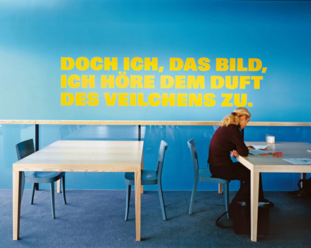 MARGHERITA SPILUTTINI Kunst Dokumente born 1947 in Schwarzach im Pongau, Lives and works in Vienna. Numerous exhibitions e.g.: Secession Vienna, Galerie Faber Vienna, Pratt Institut New York, Museum f�r Gestaltung Z�rich, Steirischer Herbst Graz, Fotogalerie Vienna, Fotohof Salzburg, Architekturgalerie Berlin, Technisches Museum Vienna, Architekturgalerie Luzern, Galerie Dittmar Berlin, Architectural Association London, Arqueria de Nuevos Ministerios Madrid, Architekturzentrum Vienna. Kunst Dokumente shows Margherita Spiluttini�s subtle view on works of different artists in different spaces. no representation, rather mere documents of rooms, situations, photographed in passing. Let us assume that we are not dealing with two different realities in photography, but only with one which merely invades our brain through the retina from two different positions. It would be conceivable that the retinal image makes less of a difference between the original and its representation than we might imagine. Even a switch of realities, a mix-up, an exchange of identities would be conceivable, such as a photo which more closely reflects the reality of the original than any accidental retinal image of the original. How else would it be conceivable that people come to see things only after they have been photographed? How else would it be possible for photography to continually conquer new areas, or views, of reality? - It is, then, that the good photographer is a deceiver, a reality monger? Friedrich Achleitner, from: �ber das Abbild und das Abgebildete, Vienna 1985 and 2007 Third Room: JACQUELINE CHANTON Repr�sentanten born 1957 in Luzern, lives and works in Vienna. Trained in Restoration at Kunstgewerbeschule Bern, Studies of Painting and Sculpture in Luzern and under Bruno Gironcoli, Academy of Fine Arts Vienna. Numerous exhibitions e.g.: Scharfes Auge, Christine K�nig Galerie, Vienna; Follow the leader, Projekt Ines Doujak, Secession, Vienna and MACBA, Barcelona; Witte de With, Rotterdam; Tiere in der Gro�stadt, Museum Hermesvilla Vienna; Phantom der Lust, Neue Galerie Graz; Inside Outside, Neue Galerie Studio, Graz. You have to aim at developing a distinctive style and authenticity if you want to get somewhere, this is what critics often demand from artists. History sustains this theory. If you look at a painting by Andy Warhol or a sculpture by Alberto Giacometti, people refer to it as "a Warhol" or "a Giacometti". At this moment, the artwork becomes the representative of the artist. If additionally there is a portrait of the artist himself, one obtains two representatives of one person. You could talk about a heraldic and a natural image now. By now, when the name "Warhol" comes up, people think of the countless icons of Pop-Art. Also Picasso's blue-and-white striped t-shirt is nearly as famous and on the spot as his Le Demoiselles d'Avignon. Jacqueline Chanton shows both, her painted portrait of the artist and also his work painted by her. She proves the fact that we live in the midst of images. The photographical portraits of various artists can be seen as a part of mass culture � as mass pictures/images. Because of their almost inflationary use, in comparison to real artworks, they turned into icons themselves. Hence Chanton�s work is an examination of a very present fact, namely the change within the culture of images/pictures. The actual artwork and the photo portrait of the artist who made it, converge. The trivial and mass cultural field of image creation expands more and more. With the invention of �image machines� a procedure was opened, which philosophers like G�nther Anders or Jean Baudrillard hold responsible for the fact that the world became an image. Jacqueline Chanton seems to show this in an elementary way. Today "a Picasso" is both, a painting and the artist himself, both are images for us. G�nther Holler-Schuster, 2007 MARGHERITA SPILUTTINI geb. 1947 in Schwarzach im Pongau, lebt und arbeitet in Wien. Zahlreiche Einzelausstellungen, u.a Secession Wien, Galerie Faber Wien, Pratt Institut New York, Museum f�r Gestaltung Z�rich, Steirischer Herbst Graz, Fotogalerie Wien, Fotohof Salzburg, Architekturgalerie Berlin, Technisches Museum Wien, Architekturgalerie Luzern, Galerie Dittmar Berlin, Architectural Association London, Arqueria de Nuevos Ministerios Madrid, Architekturzentrum Wien. Margherita Spiluttini zeigt in der Ausstellung Kunst Dokumente erstmals eine Serie von Fotografien, die ausschliesslich ihren Blick auf die Werke anderer bildender K�nstler zeigt. Scheinbar Nebens�chliches, Fl�chtiges, Periph�res, Verstecktes, Ausschnitthaftes, wie im Vor�bergehen aufgenommen. Keine Repr�sentation, sondern vielmehr Dokumente von Orten und Situationen, die sie interessierten. �Nehmen wir an, wir h�tten es bei der Fotografie nicht mit zwei Wirklichkeiten, mit zwei Ebenen oder Qualit�ten von Wirklichkeit zu tun, sondern nur mit einer, die nur von zwei verschiedenen Positionen ausgehend �ber die Netzhaut in unser Gehirn eindringt. Es w�re denkbar, dass das Bild auf der Netzhaut zwischen dem Original und dem Abbild gar nicht so viel Unterschied macht, wie wir uns das vorstellen. Ja es w�re sogar ein Wechsel zwischen diesen Wirklichkeiten, eine Verwechslung, ein Austausch der Identit�ten im Gehirn denkbar: ein Foto etwa, das der Wirklichkeit des Originals mehr entspricht als das zuf�llige Bild vom Original auf der Netzhaut. Wie w�re es sonst denkbar, dass Menschen erst Dinge sehen, nachdem sie fotografiert wurden? Wie w�re es sonst m�glich, dass die Fotografie immer neue Bereiche der Wirklichkeit oder Sehweisen der Wirklichkeit erobert? � Der gute Fotograf ist also ein T�uscher, ein T�uschler von Wirklichkeit?� Friedrich Achleitner, aus: �ber das Abbild und das Abgebildete, Wien 1985 und 2007 Third Room: JACQUELINE CHANTON geb. 1957 in Luzern, lebt und arbeitet seit 1987 in Wien. Ausbildung zur Restauratorin in Bern,