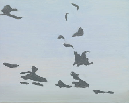 VICKEN PARSONS Solid Air Opening: September 4, 2008, 7 � 9 pm, together with the galleries Georg Kargl, Engholm Engelhorn and Gabriele Senn. Duration of the exhibition: September 5 � October 4, 2008 Vicken Parsons, 1957 born in Hertfordshire, lives and works in London. Studied at the Slade School of Fine Art in London. Selected exhibitions: 2007 Vicken Parsons, New Art Centre, Roche Court, Salisbury, England Artfutures 2007, Bloomberg Space, London 2006 Royal Academy Summer Exhibition, Royal Academy of Arts, London, Le blaireau et le roi, Chartreuse de Melan, Taninges, Haute Savoie, France 2005 Raised Awareness - Curated by Bill Woodrow, Tate Modern, London 2002 Works by Vicken Parsons seen alongside with works by Sandra Blow, Tate St. Ives Christine Koenig is pleased to announce the second solo exhibition by British artist Vicken Parsons: Solid Air Working in oil paint on small plywood panels, Parsons creates luminous images in a palette dominated by grey, white, black and blue pigment. Her on-going interest in interiors continues in a number of paintings that variously suggest the basic architecture of interior spaces - in one, simple oblique planes create a view through a passage to a doorway and mysterious space beyond. In another a white square is placed centrally on a dark grey ground like a bright window of light. Working in oil paint on small plywood panels, Parsons creates luminous images in a palette dominated by grey, white, black and blue pigment. Her on-going interest in interiors continues in a number of paintings that variously suggest the basic architecture of interior spaces - in one, simple oblique planes create a view through a passage to a doorway and mysterious space beyond. In another a white square is placed centrally on a dark grey ground like a bright window of light. Yet in many paintings this simple architecture has become more radically provisional and opened up to the elements. One painting presents five black verticals in an expanse of soft grey, like columns which have lost their ceiling, they are now open to a vast expanse of luminous sky. These dark poles like barometers seem to measure and convey atmospheric density and pressure as well as providing fixed points around which the everchanging elements of light and air revolve. Vicken Parsons has become increasingly preoccupied with skies and their atmospheres. In some images it is the low curve of the earth or a body of water that frames and opens onto a diffuse endless expanse of the sky. Solid Air presents this new series of sky paintings on whose blue grounds various shapes swell, expand, condense, accumulate in density and colour, break up and disperse. Like clouds but also like smudges, bits of stuff, torn bits of carpet, creamy wisps, snow piles, ripples on water, these are motile and available forms, with things coming into being and passing away. In contrast are Parsons� new sculptures, assembled out of rectilinear blocks of metal whose sides are painted either grey, black blue or white, and constructed on wood bases, they appear like minimal, hard-edged solid concentrations of light and air - cityscapes of the sky. (quot. Annuska Shane, 2008) THIRD ROOM: JEFF McMILLAN Not Fade Away Jeff McMillan, born 1968, in Texas U.S.A., lives and works in London. Selected exhibitions: 2008 Drift, Espacio La Culpable, Lima, Peru Loose Booty, Vegas Gallery, London & Freestudios, Geneva ArtFutures, Contemporary Art Society, Bloomberg Space, London 2007 Transformer, Woburn Square Research Centre, London 2006 John Moores 24, The Walker, Liverpool 2004 New Works, Finesilver Gallery, San Antonio, Texas Jeff McMillan has for a number of years made work that is both reductive and emphatically painterly. He looks for the intriguing, inherent potential in found artworks and objects. For his first show in Austria he will present works made with paintings on canvas (painted by others) acquired at thrift stores or antique fairs. His working method employs a simple but decisive act of submerging a pre-existing picture into oil paint, an action that could be seen as destructive or redemptive. The resulting works create new narratives and bring to mind ideas about authorship, the collapsing of history and the duality of picture and object. |