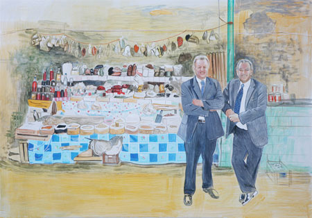 JOHANNA KANDL The Missing Guardian Opening: March 17th, 2009, 7 - 9 p.m., together with the galleries Gabriele Senn, Georg Kargl and Engholm Engelhorn The artist will be present. Duration of the exhibition: March 18th - April 25th, 2009 JOHANNA KANDL lives and works in Vienna and Berlin. Selected Exhibitions: 2009 Snipers on the Market, Galerie Kisterem, Budapest (S); 2008 Bild fliegt, Galerie Patrick Ebensperger, Graz (S); Experimenta Folklore, Kunstverein Frankfurt (G); 2007 Volksgarten, Kunsthaus Graz (G); Geographie is Dead, Dortmunder Kunstverein (S); The Painting of Modern Life, Hayward Gallery, London (G); 2006 K�mpfer, Tr�umer & Co., Lentos Kunstmuseum Linz (S); Academie, Muhka, Antwerp (G); 2005 I Sell Paintings What Do You Sell?, Christine K�nig Galerie, Vienna, (S); 2004 You never know what will happen next, Galerie Six Friedrich Lisa Ungar, Munich; speaking in public, Art 35 Basel; 2003 speaking in public, 9. Cairo Biennale; K�mpfer f�r's Gl�ck, Kunstverein Ulm; 2002 K�mpfer f�r's Gl�ck, Christine K�nig Galerie, Vienna (S); Painting on the Move, Kunsthalle Basel (G); Galerie f�r Zeitgen�ssische Kunst, Leipzig (S); ungemalt, Sammlung Essl, Klosterneuburg (G); 2001 don't worry, be happy, Fotohof Salzburg (S); Your way to the top, project in cooperation with museum in progress, Vienna (S); 2000 DerDieDas FREMDE, Christine K�nig Galerie, Vienna (with Olga Chernysheva, Kara Walker); 1999 Secession, Vienna (S) G group exhibtion; S solo exhibition; Johanna Kandl's images draw their vexing effect and also at times their strange humor from the rift between the suggestive forces of global capitalism and a pathetic life reality. "I enjoy the fact that there is a rift between image and text." The painting The Missing Guardian after which the exhibition is named shows two men, both wearing business suits and in a very good mood, standing in front of a sales stand. Investors? Social descendants? New moderation? Other works address the artist's own past, depicting the fa�ade of her parents' paint shop on Br�nnerstrasse with signs advertising brands no longer existing today. The marginal small businesses make frequent appearances in her compositions with only the geographical coordinates changing: Viktor Adler market in Vienna, Belgrade, Baku, Ukraine, Bosnia, Karl-Marx Allee in Berlin. It is this world undergoing transformation that Johanna Kandl has captured in small sections of reality. Her works are anything but abstract which also holds true for the process of their production. The artist usually begins with photographs that she or her husband Helmut Kandl has made. The global archives of imagery, whether supplied from the Internet of from journals, are of no interest to her. Art is an avowal to the particular, to narrative fragments that cannot be arranged to form a large narration but rather stick in a state of the chthonic. The present-day economic crisis is playing into the hands of Johanna Kandl's modules of world interpretation in the sense that it retroactively adds a negative energy to the text-image combinations. Now it is not about a disproportionate relation between a super-capitalism that is triumphantly gesturing with its slogans and rhetorical expressions of pathos and its less capital-intensive marginal locations but about a universal dystopia. Capitalism is the first case of a blaming rather than repenting cult, as Walter Benjamin wrote in 1927 in a text that is still worth reading today: "The nature of the religious movement which is capitalism entails endurance right to the end, to the point where the universe has been taken over by that despair which is actually its secret hope. Capitalism is entirely without precedent, in that it is a religion which offers not the reform of existence but its complete destruction." (cited after Walter Benjamin) A large-format painting, very thin, almost painted in the grisaille style, depicts a huge number of sacral figures at a stand in Medujgorje. Next to it there is a piece on "Pyramid Games" and the "Pyramid" of Visoko in Bosnia where small tourism has been developing in recent years. A Bosnian living in exile disseminated the theory that the city hill was a pyramid - the oldest and largest in the world. One video shows the Piazza in Loreto, a Madonaro (street painter), Maltese nuns, a colorful Fiat sports car being blessed, a swarm of bees which on Pentecost Sunday punctually landed on a fountain figure and transformed it into a swarming, amorphous mass. For the video Br�nnerstra�e 165 in 2008 Johanna stepped again into the garden pond behind her family's shop. You see the family being filmed by her father with an 8 mm camera. Johanna Kandl's reports on the periphery of the world and on the end of an epoch are attempts to translate the world in which we live - whose visual substrates spin about us as serial images from the media - into a state of lasting imagery, epigrammatically. Painting has more plasticity than photography - and at the same time it should be recognizable in terms of its illusionistic character. It is a subtle tight rope walk which when successful is able to establish an ontology of instability. "Sometimes history catches up with you," as Johanna Kandl says. "Maybe my work assumes more clarity as a result of the crisis. It's different in any case." Thomas Mie�gang, Vienna 2009 |