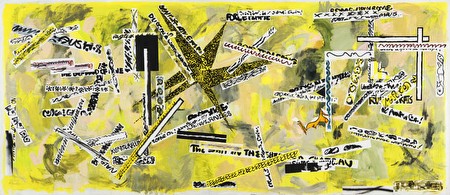 acrylic and spray paint on linen 83 1/8 x 194 1/2 inches |