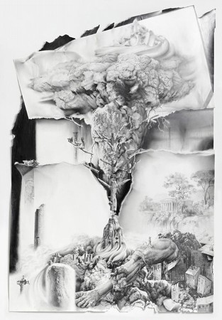 Robert McNally - Shotgun in't mouth, brains on't wall September 3 - October 8, 2011 Opening Friday September 2. 17.00 – 20.00 David Risley Gallery is proud to present a solo show of new drawings by Robert McNally. The title of this show refers not to a suicidal tendency but the process of duress under which the work is made. McNally pushes himself into a too tight time frame to make the work. The resulting drawings are the artists’ brains on the wall. McNally takes several of his narrative cues from the top 10 most popular daily news items on the BBC website. He regards this as a barometer of public interest removed from editorial hierarchy. McNally uses it as evidence of what people enjoy seeing and a guide to what he should include in his drawings to entertain his audience. The drawings in the exhibition do not offer guidance or judgement in the sense of Dutch 17th century morality paintings. McNally is more interested in the hypocrisy of those works than their moral message, a bawdy painting of a brothel scene masquerading as social critique. McNally’s complex, compelling drawings create twisted, folding spaces inhabited by drifters, religious icons, historical figures and self portraits as everyman, walking through a fragile, paper world of violence and disaster. All of this is presented as if on display in a vitrine, existing purely for our gawping. Robert McNally is in the collection of Museum Boijmans Van Beuningen (NL), West Collection (US), Damien Hirst’s Murderme collection (UK), Robert Devereux collection (UK) and Ole Faarup collection (DK). For further information and press photos please write to [email protected] David Risley Gallery Bredgade 65A DK-1260 Copenhagen T: +45 26163671 [email protected] www.davidrisleygallery.com |
