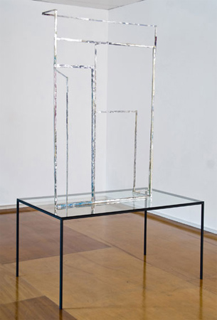 Aluminium, gouache paint, waterbased primer, polyester resin, glue on painted steel & glass table, 154 x 120 x 57 cm / Table: 70 x 139 x 86 cm |