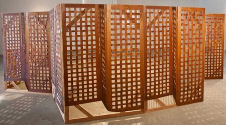 MEREDYTH SPARKS Accordion La galerie frank elbaz est heureuse d’annoncer la troisième exposition personnelle de Meredyth Sparks, Accordion. L’exposition rassemble plusieurs installations murales, une cloison pliante composée d’une série de panneaux et un choix de toiles au format plus intime. Avec ces oeuvres récentes, Meredyth Sparks poursuit sa recherche plastique autour du concept d’extraction, une technique qu’elle n’a pas cessé d’affiner au cours des dernières années. L’extraction telle que l’entend l’artiste consiste à isoler l’image préexistante et en retrancher certaines parties, signalant ainsi un “original” absent. Au lieu d’une addition de formes, l’extraction procède par soustraction, un peu à l’inverse du collage. Elle reconfigure l’image existante et confère aux composantes les plus figuratives du champ photographique les propriétés matérielles d’un objet artistique. Les oeuvres qui ont pour point de départ une toile laissent souvent entrevoir le châssis, le mur et les jeux d’ombre et lumière. Tout, ici, contribue à évoquer une quête phénoménologique de ce qui se trouve “derrière” ou “sous” l’espace du tableau, dans un va-et-vient entre trompe-l’oeil et abstraction, entre reproduction et invention. Beast of Burden, l’oeuvre maîtresse de l’exposition, restitue en photogrammes vidéo pixélisés l’interprétation de la chanson des Rolling Stones Beast of Burden par Bette Midler à l’émission de variétés Johnny Carson Show, un soir de 1983. La prestation de Bette Midler se déploie sur douze panneaux, figeant ses contorsions burlesques dans une suite d’images arrêtées. Les photogrammes découpés en damier répondent directement aux images en trompe-l’oeil visibles au dos de la cloison pliante, qui est en l’occurrence un modèle en bois à usage domestique : un objet d’ameublement s’imbrique avec le spectacle donné par Bette Midler. Des paravents “mous” dialoguent avec Beast of Burden. Meredyth Sparks les a détachés des barres de châssis auxquelles ils étaient solidement cousus. Ces paravents mollement accrochés au mur ressemblent à des vêtements ôtés. L’oscillation entre le dur et le mou, qui s’inscrit dans la démarche minutieuses de l’artiste, renvoie à la nature historiquement féminine des travaux domestiques. La cloison pliante et les formes molles font penser aussi à un accordéon dont les soufflets souples s’emplissent d’air et se dégonflent au gré des mouvements manuels pour émettre des sons en continu. Le titre de l’exposition, Accordion, souligne la capacité de la cloison pliante à s’étirer et se contracter physiquement, en modifiant l’agencement de l’espace. Accordion résume aussi en lui le caractère dilatablerétractable de la vision, qui recompose le réel par un recadrage continuel du banal. Galerie frank elbaz is pleased to announce, Accordion, Meredyth Sparks’s third exhibition at the gallery. Accordion features a multi-paneled double-sided room divider, several accompanying wall installations, as well as a selection of more intimately scaled canvases. This new work furthers the conceptual and formal method of extraction, a technique Sparks has been refining over the last several years. According to the artist, extraction involves the removal of and cutting away from a pre-existing image or object, intimating the absence of some “original” element. Rather than juxtaposing one image on top of another, extraction cuts into a found image, a gesture that functions as a kind of inverse to collage, reframing scenes and imbuing the more representational aspects of photographic space with the material properties of an art object. Sparks’s canvas-based work often includes glimpses of the stretcher bar, the wall and a manipulation of light and shadow. Together these elements suggest a phenomenological pursuit of what exists “behind” or “beneath” the picture space, shifting between illusion and abstraction, reproduction and invention. Beast of Burden, the centerpiece of the show, captures in pixilated video stills, Bette Midler’s performance of the Rolling Stone’s “Beast of Burden” on a 1983 episode of The Johnny Carson Show. Midler’s performance stretches across twelve panels, freeze-framing the twisting and contorted gestures that embody her playful form of burlesque. Each performance still has been cut in the form of a grid in direct response to the trompe-l'œil image on the opposite side the screen, which in this case is a domestic wooden room divider, interweaving an interior object with the spectacle of Midler’s public persona. In conversation with Beast of Burden, Sparks has installed a series of “soft form” screens, which had previously been sewn tautly onto stretcher bars and then removed. Suggestive of discarded clothing, these screens now hang limply on the wall. Sparks’s play between hard and soft forms, along with the labor-intensive nature of her work, alludes to the historically feminine character of domestic labor. Together with the accordion screen, however, these soft forms also denote the hand manipulation of an accordion instrument’s “bellows,” which inflate and deflate with air to form a continuous sound. The title of the exhibition, Accordion, foregrounds the screen’s potential to physically expand and contract, modifying the architecture of the space. However, Accordion also recapitulates the expandable and collapsible nature of seeing, remaking through the continuous reframing of the banal and the ordinary. Vernissage de l'exposition le 02 février de 17h à 21h Opening solo exhibition February 2nd - 5pm to 9pm Exposition jusqu'à fin mars, du mardi au samedi, de 11h à 19h Exhibition till end of March, Tuesday-Saturday, 11 am-7pm |