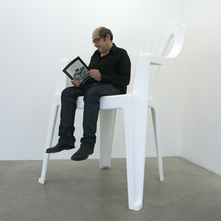 Lilian Bourgeat Communiqu� de presse, texte de Pascal Beausse D�stabilisation � tous les �tages � Je comprends tout �, est-il �crit sur la feuille de papier tenue en main par la visiteuse d'une exposition de Lilian Bourgeat, dans un dessin de Philippe Vuillemin. Les collisions entre l'intention de l'artiste, l'interpr�tation par les accompagnateurs professionnels de son travail et la r�ception par ses spectateurs m�mes donnent au dessinateur une mati�re in�puisable pour brocarder les us et coutumes du monde de l'art. Avec lui, l'artiste a trouv� plus qu'un critique irr�v�rencieux. � chaque oeuvre r�alis�e par Bourgeat correspond un dessin de Vuillemin. Comme sorti des pages de L'Echo des savanes, le dessin prend son autonomie tout en jouant le r�le d'un cartel loufoque, mettant en ab�me l'oeuvre dans le lieu m�me de sa pr�sentation. Les discours sur l'art, qu'ils soient �rudits, p�dagogiques, mondains ou communicationnels, sont mis en p�ril dans leur pr�tention � l'autorit� et � la cl�ture du sens. C'est que l'art de Lilian Bourgeat est � double d�tente (voire plus, si affinit�s). L'agrandissement qu'il inflige � l'objet est un leurre. La modalit� plastique consistant � reproduire des objets tir�s du quotidien en augmentant leur �chelle est si fr�quemment utilis�e depuis Claes Oldenburg que cela n'a plus rien d'original - s'il s'agit de la seule finalit� de l'oeuvre. Raymond Hains, en son temps, en avait d�j� moqu� la syst�matique. L'art unlimited est devenu une cat�gorie en soi de la sculpture, au service parfois de sa spectacularisation. Ce qui en d�termine la justesse r�side dans le programme animant les motivations de ce devenir-monstre de l'objet, par sa sortie du domaine strict de l'utilitaire pour prendre une nouvelle fonction dans le champ du monumental. Reproduites selon un coefficient de deux fois et demie leur taille normale, les chaises de jardin de son D�ner de Gulliver emplissent l'espace de la galerie jusqu'� l'obstruer, comme s'il �tait inad�quat � leur d�mesure. Sa grandiose pyramide de coupes de champagne �voque avec ironie le succ�s et sa c�l�bration - quant � lui, Vuillemin y fantasme de dyonisiaques libations ! La s�duction imm�diate occasionn�e par l'exposition d'objets g�ants, parfaitement reproduits dans leurs formes et mat�riaux, l'aspect "art rigolo pour enfants de 3 � 103 ans", ne sont que des pi�ges. Le paradigme swiftien fait bien s�r perdre au spectateur de sa superbe, en le privant de sa ma�trise habituelle de l'ordre des choses. Mais plus encore, les dispositifs imagin�s par Lilian Bourgeat repoussent l'individu, l'agressent, l'�jectent hors de l'espace de monstration, lui font comprendre qu'il n'y a pas sa place. S'enclenche alors le cauchemar d'une inadaptation de l'�tre humain � l'environnement qu'il a engendr�. Lilian Bourgeat n'a aucune pr�tention � r�enchanter le monde. Il partage avec Vuillemin un humour noir, au trait gras, f�roce et jouant d'un suppos� "mauvais go�t". C'est la morale d'un art d�signant les vanit�s et s'amusant du ridicule de situations quotidiennes. En conviant la caricature au coeur m�me de son travail, l'artiste invite � une philosophie du doute. De cette mise � l'�preuve des certitudes, l'on sort... grandi. Lilian Bourgeat est n� en 1970 en France ; il vit et travaille � Dijon. Lilian Bourgeat The objects of daily life and confrontation to unique situations form the basis of Lilian Bourgeat's work. His objects, "hyperrealists," are much larger than in reality, thus the line between functionality and proportion becomes very thin. He realizes a giant tape measure on which each millimeter equals one centimeter, plastic cups of 40 cm in height that one can drink with (a difficult task if one does not want to spill the contents), push-pins on cork panels 36 cm in diameter, rubber boots 3 meters in height, etc. By blurring reference marks, Lilian Bourgeat distorts the perception of not only the objects themselves, but also the space where they are installed. Focusing on the ties between art and world, via the relationship of representation and perception, he questions our comprehension of reality and disturbs the natural process by which we understand the world around us. ________________________________ Lilian Bourgeat au CCC de Tours Les encombrants Exposition du 28 juin au 23 novembre Vernissage le samedi 28 juin 55 rue Marcel Tribut - 37000 Tours T 02 47 66 50 00 / Email : [email protected] |