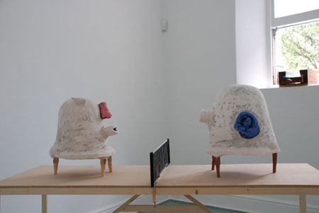 Bystanding preview 20 August 2010 21 August - 25 September 2010 G39 brings together new works by three artists who use common elements of observation, speculation and the re-enactment of events within a gallery context. For Bystanding, Lauren Elizabeth Jury, Will Woon and Mark Folds use different strategies to mediate and re-present us with a mixture of tragicomedy, empathy and hope. �Bystander� often refers to passive witnesses or to innocents that get swept up in events. There is a phenomena known as the bystander effect in which it was seen that the more people that witness an incident, the less likely they are to respond, that each individual assumes somebody else will or that a response isn�t necessary if no-one else acts. For this show the word moves from noun to verb and the act of observing and responding is the focus; it fits the artists in this show more accurately; bystanding, or �standing by�. Mark Folds is a public artist in the widely understood sense, responding to commissions for street furniture or sculptures. But he also has a shadow activity that started with a project called I love Peckham in 1996. For this project he focussed the destruction or neglect of other people and began fixing or transforming things, small acts changing bigger things. This practice has continued since he moved to Wales. His work, as he puts it, injects 'a slight wobble into the everyday'. He makes 'outstallations'. By making small physical changes to a place, Mark anticipates a change in his audiences' perceptions. By sowing subtle visual seeds, he encourages us to look again, to re-think and re-engage with our environment. His work triggers questions about commonly held and learned perceptions; by turning these on their head he offers an alternative way of seeing. Lauren Elizabeth Jury is in the process of producing a photographic study of George Cole of Treherbert, who worked on the Rhigos Road until 1992. George was responsible for the appearance of the floral roadside decorations outside the �White House� workman�s hut. His duties were to keep the road clear of debris from the stones falling from the mountainside and amused himself in quiet moments by creating flowers, windmills, miniature houses and animals from various materials for his �decorative garden�. From her position - observing an outsider artist reinventing the world he finds himself in to make it better, never intending gallery/ art connotations but making a deliberate and creative change she introduces an empathy with this character in the landscape. The scale of the mountain and the abject quality of some of these sculptures echoes the work of Will Woon. Will�s practice is peopled by miniature models, like architectural maquettes or proposals for future sculptures. Often characters (where they are identifiable) are seeking or addressing an audience, they involve podiums, lecterns or speeches or he presents buildings that are fragile and at points of precariousness or collapse. This miniature world has more in common with animated characters than the conventional modelmakers Hornby suburbs. Wills work is very much rooted in a gallery tradition with references to antiquities of classical statues, but the gallery becomes both the setting expanded world over which he presides. Like the subject of Lauren�s photographs or like Mark, Woon builds a world in which his own creativity shapes the way we negotiate it and understand it as a place in which multiple narratives are allowed to play out. |