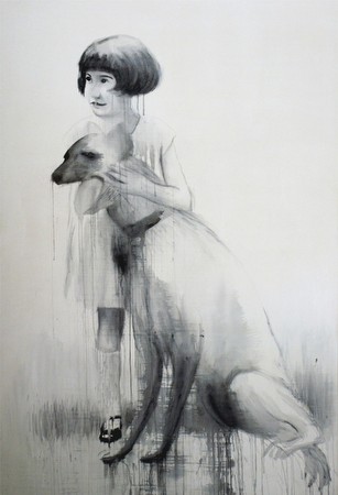 VANESA GÓMEZ “La Cal” Del 24 de septiembre al 19 de noviembre de 2011 Inauguración: sábado 24 de septiembre de 2011 / 20:30 h Horario: de Martes a Sábado: de 18:00 h a 21:00 h Opening Hours: Tuesday to Saturday: 6-9 pm La Galería Fúcares presenta por primera vez, en su espacio de Almagro, una exposición individual de la artista Vanesa Gómez. 1. Nota de prensa Cinco años girando en la ruleta me devuelven al punto donde me subí, hace cinco años (ese coche no conducía a ninguna parte). Al mismo punto donde me subí: las novias acuáticas escupen el lodo, los tristes soldados apartan el miedo y los niños muestran su sexo para volverse reales, para cruzar la frontera de los meros fantasmas.Todo es casi igual, pero hay pequeños cambios: las figuras ya no quieren tocar suelo y flotan en el espacio, impulsadas por su cabeza despeinada, inmersas en una nube de aire y humo. Trabajo mucho a partir de fotografías antiguas, para construir el pasado, para construirme una memoria, aunque las fotos ni siquiera sean mías y la memoria sea, por tanto, artificial. Establezco una relación con esos desconocidos, ya que la mayoría son imágenes prestadas o bajadas de internet. Me entran ganas de archivarlos en un álbum y guardarlos en el baúl, junto al resto. En mi familia la relación entre celebración y muerte se estrecha: una muerte para mi bautizo y un cadáver en mi comunión, veinticuatro horas después, en casa, donde recibí los regalos, donde me comí la tarta. He reconstruido mi taller en la casa de mis padres. Sólo los espejos de la casa familiar son objetivos: en ellos descubro, asombrada, que definitivamente envejezco. Busco en la pintura un referente, un ancla, una memoria y un deseo. También busco un espejo. Como en un espejo, en el cuadro me veo, me busco y me muestro. El cuadro devuelve imágenes de mi posible belleza y sobre todo, y sin tapujos, devuelve los reflejos de mi más profunda fealdad. 2. Breve declaración prestada. (Reflexiones frente a un tetra-brick y un bote de suavizante). Debo confesarlo sinceramente. La vista de cualquier animal me regocija y me ensancha el corazón, sobre todo la de los perros, y luego la de todos los animales en libertad, aves, insectos, etc. Por el contrario, la vista de los hombres excita casi siempre en mí una aversión muy señalada, porque con cortas excepciones, me ofrecen el espectáculo de las deformidades más horrorosas y variadas: fealdad física, expresión moral de bajas pasiones y de ambición despreciable, síntomas de locura y perversidades de todas clases y tamaños; en fin, una corrupción sórdida, fruto y resultado de hábitos degradantes. Por eso me aparto de ellos y huyo a refugiarme en la naturaleza, feliz al encontrar allí los brutos. (Schopenhauer, El amor, lasmujeres y la muerte). Fúcares Gallery presents at Almagro, the artist Vanessa Gomez's first exhibition. 1. Press Release Five years spinning in the wheel, returns me to the point where I got on, five years ago (that car wasn't going anywhere). On the same point where I got on: underwater brides spit mud, sad soldiers cast aside fear and children show their sex to become more real, to cross the border of mere ghosts.All is practically the same, however there are small changes: figures don't want to touch the floor anymore and float in space, driven by their tousled hair, immersed in a cloud of air and smoke. I work a lot based on old photographs, to build the past, to build a memory, although the photos aren't even mine and the memory is therefore artificial. I establish a relationship with these strangers, as most are images borrowed or downloaded from Internet. I feel like filing them in an album, and storing them in a trunk, along with the rest. In my family the relationship between celebration and death is close: a death for my baptism, a corpse at my communion, twenty-four hours later, at home, where I received the gifts, where I ate the cake. I rebuilt my studio at my parents' house. Only the mirrors of the family home are objective: in them, I discover, startled, that I definitely age. I seek in painting a reference, an anchor, a memory and a desire. I also look for a mirror. As in a mirror, in a painting I see, find and show myself. The painting reflects images of my potential beauty and, above all and openly, exposes the reflections of my deepest ugliness. 2. Brief borrowed statement. (Reflections in front of a carton and a bottle of conditioner).I must sincerely confess. My heart expands with joy at the sight of any animal, especially dogs, followed by all the wild animals, birds, insects, etc. On the contrary, the sight of men arouses almost always a very remarkable aversion, because with few exceptions, they offer a spectacle of the most horrific and varied deformities: physical ugliness, moral expression of lust and despicable ambition, symptoms of insanity and perversities of all kinds and sizes; in short, a sordid corruption, a result of degrading habits. That is why I steer clear of them and flee to take refuge in nature, happy to find there the brutes (Schopenhauer, Love, Women and Death) |