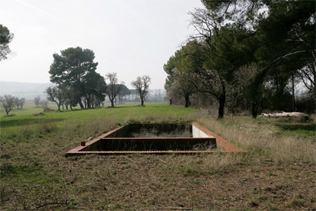 Javier Ayarza The numbered days Apr. 23, 2009 / Jun. 20, 2009 F�cares Gallery is proud to present the first individual exhibition in Almagro by the artist Javier Ayarza (Palencia, 1961). In Javier Ayarza�s career as an artist there is an element that provides the different series that he has presented in recent years with continuity, and this element is his interest for territory and traces. It could be said that his is a work about �marks�. Javier Ayarza�s artistic practice has its roots in the painstaking reading of works about territory, which has constituted one of the backbones of the history of photography in recent decades. Precisely in the updating of that topographic searching is where his proposal is placed. With �The Numbered Days�, Javier Ayarza (Palencia, 1961) finishes the series started in 2002 under the title La Siesta del Fauno [The Faun�s Siesta], a work that develops itself around a territory scarcely recorded, a geography scarcely inhabited, limited economic activity, scarce traces of modernization (acculturation?), and in which an initiative of a strikingly individual nature prevails, which hardly fits into any dynamics of planning or homogenisation. The traces that are to be found in these images are those of a timeless space, a basic and unfinished urban planning, in which man�s presence, physically absent, takes shape through the artist�s traces and interventions. However, the �topographic� updating proposed by Ayarza does not just develop an exploration of a territory �unrecorded� so far but it does so from an autonomous creative strategy that does not imitate models, since in this work the objectivity of the whole current derived from the German school (coldness, distance, absence of emotiveness), mixes with an approach seeking to construct an �experience of territory� whose base stresses the presence of marks and traces that speak about activity, life and dreams, if not paralyzed, at least absent. |