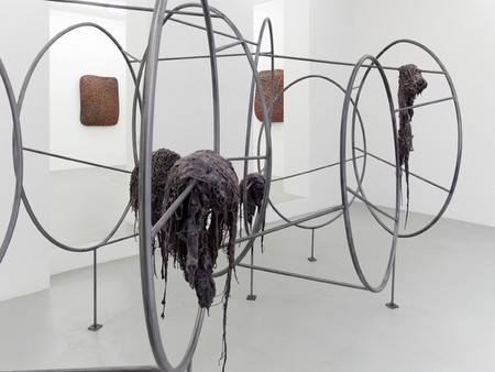 GALERIE CHRISTIAN LETHERT Gereon Krebber: blipplings October 30 – December 19, 2015 Opening reception: Friday, October 30, 2015, 6-9 pm The sculptor Gereon Krebber (*1973) presents with “blipplings” his 4th solo exhibition at Galerie Christian Lethert. With his new works he investigates issues like grotesque and decay as sculptural shape once again demonstrating his sense of form and his innovative use of unconventional materials. Krebber presents a new large-sized sculpture, created for the entrance area of the gallery. Several entangled oval rings made of steel stand on thin steles. An unidentifiable stringy mass hangs from braces going through the rings. Have you just entered a gallery or are you in the midst of a circus stage? Will the molecule-like construction start rotating or will one of Krebber’s other objects come alive in the next minutes and jump through these rings? Curiosity and horror, repulsion and attraction, the physical and the fantastic intermingle in the room. Lurking in the background is a subtle, tension-filled disturbance – as if something “un-dead” might come to life immediately. A similar inner pounding characterizes his new wall works from the series “Surrogates” that he has been working on since 2007/08. Krebber shows these works in the adjacent room of the gallery. The material of these works also becomes nearly unidentifiable: Krebber uses conventional clear sello tape in uncountable layers around a plastic filling, perforated with heat and colored with spray paint. The perforation create holes of different size and depth. These kinds of ‘injuries’ open the view to the underlying colored layers and their interplay. While the artistic process is still the same, the spectrum of shapes and colors has been enhanced intensively. The similarity between the abstract forms and biomorphic structures is the ambiguous feeling they evoke: Starting with the creation process that moves between construction and destruction, the works appear alive and organic, yet at the same time trigger associations of dissolution and decay. Fascination and horror are not mutually exclusive in Krebber’s oeuvre but rather two sides of the same coin. From December 2nd – 6th, 2015 we will be participating in UNTITLED Miami Beach and on January 22nd we will be delighted to start 2016 with our 10th GROUPSHOW. --- Gereon Krebber: blipplings 30. Oktober – 19. Dezember 2015 Eröffnung: Freitag, 30. Oktober 2015, 18-21 Uhr Der Bildhauer Gereon Krebber (*1973) bestreitet mit „blipplings“ seine vierte Einzelausstellung in der Galerie Christian Lethert. Mit seinen neuen Arbeiten greift er Themen wie Groteske und Zerfall als skulpturale Form auf. Er beweist einmal mehr sein Gespür für Formen und seinen unkonventionellen Umgang mit Materialien. Im vorderen Raum der Galerie präsentiert Krebber eine neue großformatige Skulptur, die er eigens für die Eingangssituation entworfen hat. Mehrere ovale Ringe aus Stahl, die zu einem Ensemble verbunden sind, stehen auf Stelen über dem Boden. Auf den einzelnen Querstreben hängt eine nicht genauer zu identifizierende Masse fahl und strähnig herunter. Hat man soeben eine Galerie betreten oder befindet man sich vielmehr inmitten einer Manege? Fängt das molekülartige Gebilde an, sich zu drehen oder springt ein anderes von Krebbers zum Leben erwachten Objekten im nächsten Moment durch die Reifen? Schaulust und Schrecken, das Abstoßende und Anziehende, Materielle und Fantastische begegnen sich im Raum. Unterschwellig entsteht eine spannungsreiche, lauernde Unruhe – als würde gleich etwas „Untotes“ zum Leben erweckt. Ein ähnliches inneres Pochen kennzeichnet die neuen Wandarbeiten der Reihe „Surrogates“, an der er seit 2007/08 arbeitet. Krebber zeigt diese im hinteren Raum der Galerie. Auch hier ist das Material fremdartig geworden und kaum noch zu identifizieren: Es handelt sich um herkömmliches Klebeband, das in unzähligen Schichten über eine Folienfüllung gespannt, mit Hitze versehrt und mit Farbe besprüht wurde. Die Form wird so perforiert, dass die Löcher unterschiedlich groß und tief werden. Diese Versehrungen geben den Blick auf die tieferliegenden Schichten und Farben und deren Zusammenspiel frei. Während der künstlerische Prozess gleichgeblieben ist, hat sich das Farb- und Formspektrum der Arbeiten stark weiterentwickelt. Den abstrakten Formen und biomorphen Strukturen der Objekte ist eine ambivalente Note gemein: Wie im Prozess ihres Entstehens, der sich zwischen Konstruktion und Destruktion bewegt, wirken die Gebilde einerseits organisch und belebt und andererseits ist ihnen die Zerstörung und der Verfall bereits eingeschrieben. Faszination und Horror schließen sich im Krebberschen Werk nicht aus, sondern liegen nahe, allzu nahe beieinander. Vom 02. bis 06. Dezember 2015 sind wir auf der UNTITLED Miami Beach vertreten und am 22. Januar 2016 freuen wir uns, das neue Jahr mit unserer zehnten GROUPSHOW zu eröffnen. --- GALERIE CHRISTIAN LETHERT ANTWERPENER STRASSE 4 50672 COLOGNE, GERMANY T +49(0)221 3560590 F +49(0)221 3560554 |