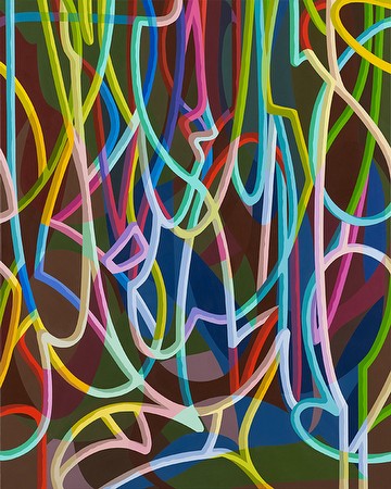 YVES OPPENHEIM Paris: 57, rue du Temple 11 June – 25 July 2015 Opening: 11 June 2015, 6–8pm Galerie Max Hetzler, Paris is pleased to present an exhibition of recent paintings and drawings by Yves Oppenheim. Unpredictable, Yves Oppenheim often plays with the effects of repetition and variations of a formal abstract language, creating intricate pictorial spaces and elaborate chromatic harmonies. In his large scaled computer-generated canvases, coloured shapes, clearly outlined, as if cut out, layer and intertwine on the surface. The alternation between transparent and opaque textures leads to expressive optical illusions with infinite possibilities, encouraging the viewer to take a deeper look at the artwork as well as to spend more time with it. “My work primarily concerns the action of colour on mind and conscientiousness. There is a logic of coloured sensation. It starts from a point on the picture, a point to which one holds fast; thence one follows the pathway of the colour, which meets other colours, passing above or below them (or through shadow), and being gradually transformed. (…) Very often black and white are present by way of reference. The picture is composed of several dozen of different colours that attain life and autonomy. (…) In every case, the light comes from the depths. There is a layering of coloured surfaces that creates the structure, which is an immense space. It is like walking in a jungle: you have to part the branches and lianas to see the light behind them. By creating space, the eye circulates in colour.” (Yves Oppenheim, in Remember Everything, 2013) Yves Oppenheim’s works evoke Matisse’s collages as well as American painting from the 1950s and 1960s (Frank Stella, Mark Rothko, Barnett Newman...). Eschewing art as a process, Oppenheim cultivates a sensitive and liberated approach, a poetic quest, attempting to distance himself from gesture and material, both having been favoured for so long. Alongside his paintings, which he executes at a slow pace, Yves Oppenheim pursues a more spontaneous approach in his works on paper. The ink drawing series on view provides a counterpoint to the canvases. Gestures free themselves, whereas forms become more organic and evocative, some figurative components even crystalizing in the tangled lines. “These are drawings of sensations, materials, and forms and thus allow the work to be connected to a reality, to an instant of thought. Drawings are related to the pleasure of unconstrained freedom. I see them as objects of reverie and indefinite spaces.” states Oppenheim, “It is connected to deep memory. I like the way this works on several levels and seek to avoid creating works that reveal themselves at first glance. I layer sensation and other qualities such that the spectator can explore in depth like an archaeologist, reconstituting and appropriating the original thought.” (op. cit.) Yves Oppenheim, born 1948 in Tananarive, Madagascar, has been living and working in Berlin since the early 2000’s. His past exhibitions include Galeria Pedro Cera, Lisbon (2014, 2009 and 2005), Charim Galerie, Vienna (2014 and 2005), Galerie Max Hetzler, Berlin (2009 and 2005), Galerie Xippas, Geneva (2012), Athens (2010 and 2007), Paris (2006), and Galerie Xavier Hufkens, Brussels (2005). Paintings of his are part if the collection of public institutions such as the Musée d’Art Moderne de la Ville de Paris, the Centre Pompidou, Paris and the Carré d’Art Nîmes. |