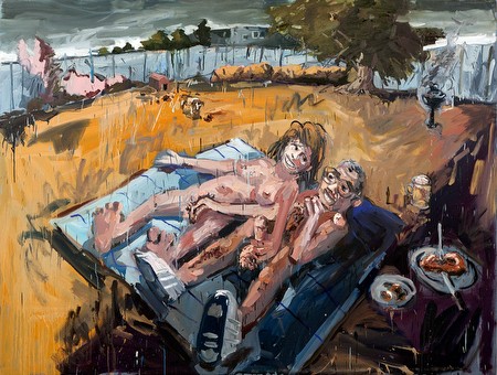 Scroll down for text in English AS YOU STAND THERE WATCHING DAN SCHEIN Opening: Friday 20.01.2012 17-19 Duration: 20.01.2012 - 17.02. 2012 Den unge amerikanske maler Dan Schein udstiller for første gang i Europa i Galleri Tom Christoffersen. Efter han tog sin MFA på Tyler School of Art, Temple University i Philadelphia sidste år, har han haft et residency i Schweitz i Stein Am Rhein, Chretzeturm, hvor størstedelen af udstillingens værker er blevet til. Dan Scheins malerier er figurative og fortællende. Hvert af dem er som et fastfrosset filmstill, eller som et overgangsbillede i en tegneserie mellem taleboblerne. Der er en handling i gang. Scenerne udspiller sig i landskabet, i skoven, og det tætteste vi kommer det urbane er parcelhushaven. Aktørerne kan være lystige nudistpar eller den ensomme vandrer og ingen synes at ænse ”kameraet”. De akavede, morsomme eller de melankolske, triste scener fremstår tyste, men utrolig stemningsfulde, og historierne lever i hver enkelt. Det nøgne par der hygger sig efter deres barbecue, i haven med Webergrill, fortæller om nutiden, mens den vrede forsamling bønder med høtyve fortæller om fortiden. Det er særligt i naturskildringen Dan Scheins maleriske karakteristika træder frem. Hans meget grove brede penselstrøg og de kantede aftegninger kan minde om den danske kunstner Erik Hoppe (1896-1968). Og som Erik Hoppe søgte efter en ”farvemening” i kunsten, gør Dan Schein. Det handler ikke om farven som strålende eller stærk, men om dens fylde og dybde. Dan Schein sætter som Hoppe farve mod farve og rammer i de tunge flader en melankolsk, nærmest nordisk klang. Går man længere tilbage i den danske kunsthistorie kan Dan Scheins skildringer af træer og himmel minde om en Albert Gottschalks (1866-1906) ”ufærdige” symbolisme. Det er sanseligt med en stærk stoflig spænding. Dan Schein maler som Gottschalk farverne ind i landskabet samstemt med lyset og vejret, og træffer sikkert, i balance med den handling der udspilles i billedet, virkelighedens øjeblikkelige karakter. - The young American painter Dan Schein exhibits for the first time in Europe at Galleri Tom Christoffersen. After he gratuated and got his MFA at Tyler School of Art, Temple University, Philadelphia last year, he had a residency in Switzerland in Stein Am Rhein, Chretzeturm, where most of the works for the exhibition were made. Dan Schein's paintings are figurative and narrative. Each of them is like a frozen movie-still, or as a transitional image in a comic strip between the speech bubbles. There is an action going on. The “scenes” are played out in the landscape, the forest and the closest we come the urbane life is the detached house gardens. “Actors” can be merry nudist couples or the lonely wanderer and no one seems to notice "the camera". The awkward, amusing or melancholy, sad scenes appear hushed but incredibly evocative and a story is brought to life in each one. The naked couple enjoying themselves after their barbecue in the garden with the Weber Grill tells about present times, while the angry mob of peasants with pitchforks tells about the past. It is particularly in nature depiction Dan Schein's painterly characteristics emerge. His very coarse broad strokes and the angular markings are reminiscent of the Danish artist Erik Hoppe (1896-1968). And like Erik Hoppe searched for one of "colour meaning" in art does Dan Schein. It's not about the colour as brilliant or powerful, but about its fullness and depth. Dan Schein puts like Hoppe colour against colour and frames in the heavy surfaces a melancholic (almost Nordic) tone. Going further back in the Danish art history Dan Schein's depictions of trees and sky can remind one of Albert Gottschalk's (1866-1906) "unfinished" symbolism. It is sensual with a strong textural tension. Dan Schein paints, like Gottschalk, colours into the landscape attuned to light and weather, and balanced together with the action taking place in the picture, he pinpoints the instantaneous character of reality. Dan Schein (b.1985). 2009-2011: M.F.A Candidate in Painting, Tyler School of Art, Temple University, Philadelphia PA. 2004-2008: Purchase College SUNY, Purchase NY, Bachelor of Fine Arts, May 2008, Major in Painting. - CUBE TOVE KURTZWEIL UDVALGTE PROTRÆTTER Opening: Friday 20.01.2012 17-19 Duration: 20.01.2012 - 17.02. 2012 I Tove Kurtzweils sensitive billeder møder man kunstnere som Gisela Freund, Richard Kern, Duane Michals, Helmut Newton, Yoko Ono og William Wegman, vi besøger disse kunstnere i deres egne omgivelser. Således kom Tove Kurtzweil i den aldrende Gisela Freunds historiske hjem på Montparnasse i Paris. Gisela Freund portrættet er taget i den legendariske restaurant La Coupole. Man møder også fotografen Richard Kern i sin lejlighed i East Village, New York, hvor han havde taget en lang række af sine erotiske billeder. Helmut Newton åbnede døren til sit hotelværelse kun iført badekåbe og satte sig beredvilligt på sengen, hvor han blev portrætteret af Tove Kurtzweil. Tove Kurtzweil (*1938) er en af Danmarks førende portræt- og kunstfotografer med en betydelig international anerkendelse. Hun er inkluderet i Bibliothèque Nationales samling (Paris) Mus.de la Photographi,Charleroi,Det kongelige Bibliotek (Kbh) og Museet for Fotokunst (Odense). Tove Kurtzweil star bag en række fotografiske bøger "Rum tid" (1988), "Rummelige dimensioner" (1995) samt hovedværket, "Moment" (1998). |