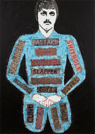 Rik Meijers YOU, DAVID, MARIA AND ME Aschenbach & Hofland Galleries kondigt met trots haar eerste solotentoonstelling aan met nieuw werk van Rik Meijers (1963). Rik Meijers� werk werd de afgelopen jaren getoond in museale presentaties in MARTa Herford, het Bonnefantemuseum te Maastricht, Het Fries Museum, Buro Leeuwarden en Het Domein te Sittard. In 2000 werd zijn werk bekroond met de Wolvecampprijs. In de tentoonstelling You David, Maria and Me komt Meijers met een nieuwe reeks onderwerpen zoals baby caps en waaiers. Ook zijn er weer levensgrote figuren die deze keer beplakt zijn met labels waarop scheldwoorden te lezen zijn. In zijn nieuwe werk is onomwonden te zien hoe Meijers zijn onderwerpen en zijn manier van werken ontleend aan volkskunst en de kunst van psychiatrische pati�nten en daklozen, de zgn. folk art of art brut. Het is de dwingende manier hoe de onderwerpen zich presenteren, het gebruik van ongewone materialen als bierdoppen, kippenveren, kralen, glasscherven en zaden en de wereldvreemde positie die de kunstenaar inneemt in het dagelijks leven en waaruit de beelden ontstaan. Als Rik Meijers geborduurde baby caps schildert in zwart of wit, schildert hij ze als eeuwenoude landkaarten. De grove structuren van de geborduurde draden liggen als littekens over het linnen. De onschuld van het onderwerp wordt verweven met de tragiek van het leven. De uitbeelding van het oerverhaal over schuld, boete en vergeving, het lijden van Christus, komt terug in de vorm van een gehurkte figuur die met de rug naar ons toe zit. Het lichaam is niet alleen met pek en veren bedekt maar ook met labels met teksten als WHORE, CUNT, SLUT etc. Rik Meijers komt met de tentoonstelling You, David, Maria and Me met een dwingende en uitzonderlijke serie nieuwe werken. Net verschenen: Rik Meijers - 100 polaroids 112 pagina's fc 16 x 13 cm. ISBN 978 90 81347914 |