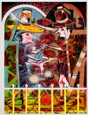 Lari Pittman Irrevocable Opening reception:April 27, 2012, 7 – 9 pm Exhibition duration:April 27 – June 30, 2012 Gerhardsen Gerner is very pleased to announce an exhibition with new works by the American painter Lari Pittman, on occasion of the GALLERY WEEKEND BERLIN 2012. Lari Pittman pursued painting at CalArts in the 1970s, when virtually everyone else was turning away from the medium. At times his particular brand of painting – which has always borrowed in equal measure from decoration and high art – has appeared positively visionary, it was so far beyond the mainstream. Now, as a younger generation of painters has come under his influence, he appears more an artist ahead of his time. It is possible to look back through Pittman’s output and see general trends. But it is difficult to separate out distinct periods. Just when did his figures start to layer and almost merge, losing the collagelike feel of some earlier work? And when have his paintings, which so openly relate to sex and repression, given way to lush compositions flowing frenzied across the canvas, yet still remaining but a clearly defined part of the visible? Certain motifs, such as the balloonlike heads and disembodied dancing legs, have occurred for decades, while others might develop in a few series, then disappear only to reemerge years later. In Pittman’s view, it is all of a piece. “For me, painting is a continuous practice,” he says. “It is a language you build up over time.” Rather than a rational narrative, a Pittman painting delivers a heady mix of allusions and chains of references. When preparing for a new show, he begins by thinking of loose themes that both distinguish the new paintings and connect them to previous bodies of work. “I have always used a very formal structuring of the event in a space,” says the artist. “In these works it is a sort of proscenium.” For this year’s Gallery Weekend in Berlin, Gerhardsen Gerner will be showing four new larger paintings on canvas and ten small paintings by Lari Pittman.In these new works, the floral, yellow and pink shapes of the earlier series of works for Gerhardsen Gerner are still to be found, albeit now hidden in the background and in deeper layers of the images.The new canvases are structured by squarish elements of colour. In two of the paintings they have been applied over the layers beneath in grids or diamond-shapes. In "A transcendent mutability produced by camouflage" they are finally combined into rectangles in their own right – a figure almost merging with the background carries one of them under the arms: a nod to the structuring element of this series. Central focus of the exhibition is the painting "The making of a Boy (1952)". Branching tubes extend across the picture surface and are flowing into colourful jars. On another layer above, four profile views in white oval frames have been placed, which are connected to each other and to the vessel at the centre by clearly defined lines. Two nest-like picture elements are positioned near the two topmost portraits. Like the passage of time bringing forth stories and legends for centuries, the composition is reminiscent of a family tree with its interwoven feather- and thistle-like structures flowing into each other and blurring. Lari Pittman lives and works in Los Angeles. He can look back on a long and successful artistic carrier and he also teaches drawing and painting at the University of California, Los Angeles (UCLA). In addition to many acclaimed international exhibitions, his work has been shown in Germany at the Kunstmuseum Wolfsburg and ZKM in Karlsruhe. Lari Pittman is represented in the renowned Goetz Collection in Munich and his works are also included in the following collections:Akron Museum of Art, Akron; Eli Broad Family Foundation, Los Angeles; Carnegie Institute of Art, Pittsburgh; Corcoran Museum of Art, Washington; Chapman University, Orange; Fondazione; Sandretto Re Rebaudengo, Torino; Los Angeles County Museum of Art, Los Angeles; Museum of Contemporary Art, Chicago; Museum of Contemporary Art, Los Angeles; Museum of Contemporary Art, Monterrey; Museum of Modern Art, New York; Newport Harbor Art Museum, Newport Beach; Peter Norton Family Foundation, Santa Monica; Phoenix Museum of Art, Phoenix; San Francisco Museum of Modern Art, San Francisco; Sheldon Memorial Art Gallery, Lincoln; Stedelijk Museum, Amsterdam; Weatherspoon Art Gallery, The University of North Carolina; The Whitney Museum of American Art, New York. Lari Pittman Irrevocable Eröffnung:27. April 2012, 19 – 21 Uhr Ausstellungsdauer:27. April – 30. Juni 2012 Gerhardsen Gerner ist sehr erfreut, eine Ausstellung mit neuen Arbeiten des amerikanischen Künstlers Lari Pittman anlässlich des GALLERY WEEKEND BERLINs 2012 zu präsentieren. Lari Pittman belegte das Fach Malerei an der CalArts in den 1970ern, als andere Mitstudenten sich von diesem Medium abwandten. Bisweilen erschien sein besonderer Malstil – der sich immer zu gleichen Teilen auf die Dekoration und die hohen Künste bezog – auf positive Weise visionär: er war einfach so weit weg vom Mainstream. Mittlerweile beeinflusst der Altmeister eine neue Generation von Malern und erscheint als Künstler, der seiner Zeit ein Stück voraus ist. Schaut man auf Pittmans Oeuvre zurück, so sind allgemeine Entwicklungstendenzen zu erkennen, jedoch lassen sich klar umrissene Schaffensperioden nicht einfach herauskristallisieren. Wann begannen sich seine Bildelemente übereinanderzuschichten, beziehungsweise nahezu ineinander überzugehen, und so das Collagenhafte der früheren Werke hinter sich zu lassen? Und wann haben seine, sich offen auf Sex und Repression beziehenden Malereien, üppigen Kompositionen Raum gemacht, die sich rauschartig über die Leinwand ergießen, aber trotzdem immer nur ein klar umrissener Teil des Sichtbaren bleiben? Bestimmte Motive, zum Beispiel die ballonartigen Köpfe und Gebilde oder die vom Körper separiert