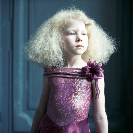 By contrast, van Meene�s European work suggests a fictional world of literary origins, one imbued with a somber mood of psychological introspection. In the 2008 series Pool of Tears, made in an abandoned house in Holland, children wander the hushed rooms like ghosts, pinned to the walls by shards of light. Made the same year, the Russia work is infused with a melancholy, introspective mood accentuated by a palette of deep blue, magenta and mustard yellow. Whereas the American youth confront the camera directly, the Russian and Dutch subjects appear captive to their own private anxieties and dark musings.
