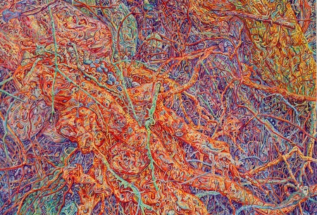 JOANNA KIRK 9 September 2015 – 3 October 2015 London Joanna Kirk’s exhibition at Blain|Southern London includes new large-scale works in pastel. Kirk is one of the few contemporary artists working solely with pastel, attracted by the pure pigment and ability to manipulate colour and texture directly with the fingers. Her works are expansive yet enveloping in their detail. Rather than depicting physical space, she creates psychological landscapes that explore ideas of isolation, motherhood, the human condition and our complex relationship with nature. Kirk addresses such intangible concepts by turning physical natural objects into almost abstract and unearthly manifestations. Recent works draw from the ever evolving topography of Iceland and the isolated valleys and woodlands of North Wales. Through layer upon layer of pastel pigment she builds scenes of tangled roots, interlaced branches and rugged rock formations. Hidden within these compositionally rich and complex landscapes are figures whose presence and position lead the narrative and mood of the piece. |